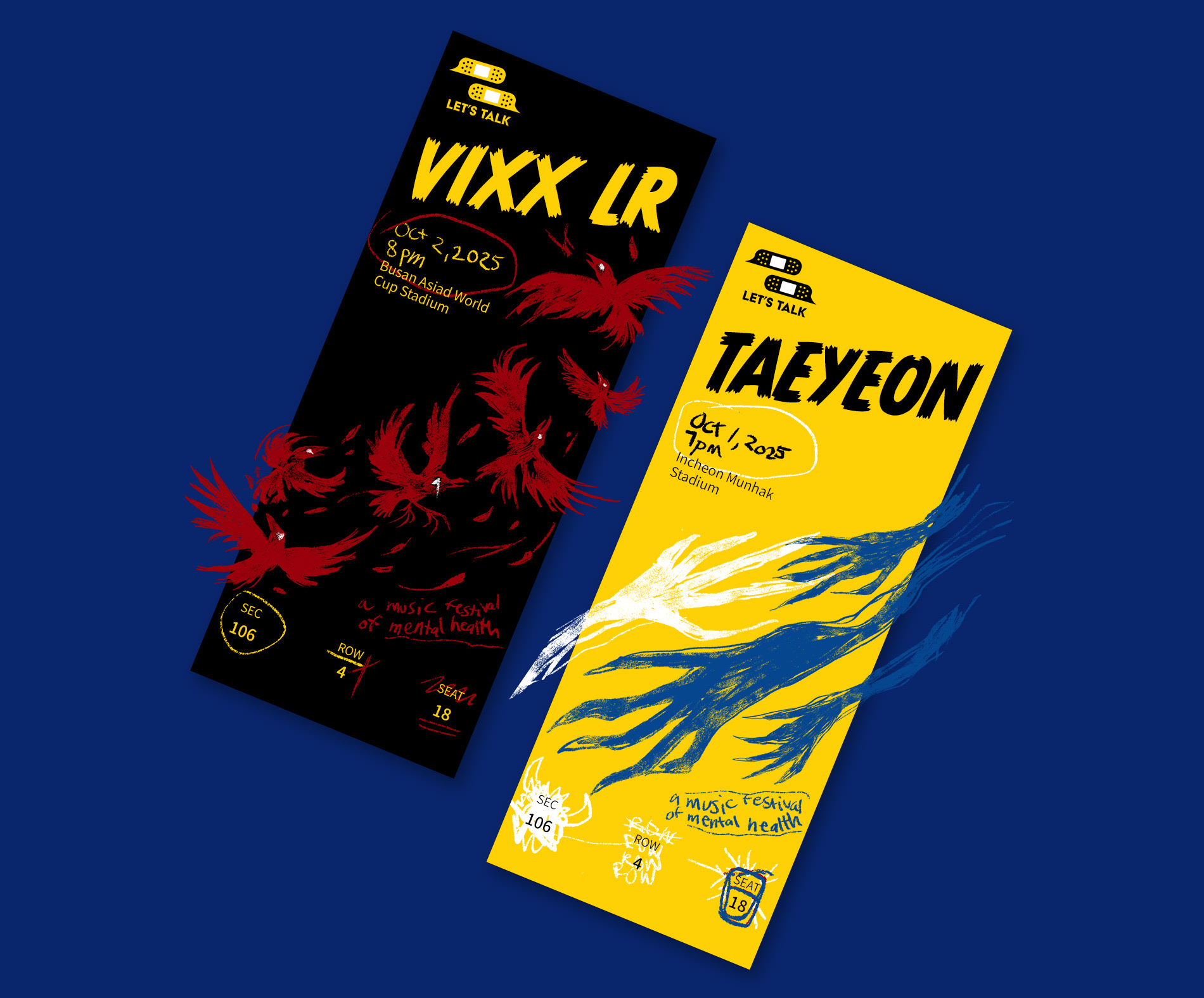 With the country's high suicide rate, talking about mental health is a taboo in South Korea. Let's Talk is a fictional music festival that enables Kpop artists to share their own mental health struggles and invites fans and music lovers to start conversations about their own mental health. The festival's multiple Augmented Reality (AR) elements show that things aren't always what they appear to be on the surface.